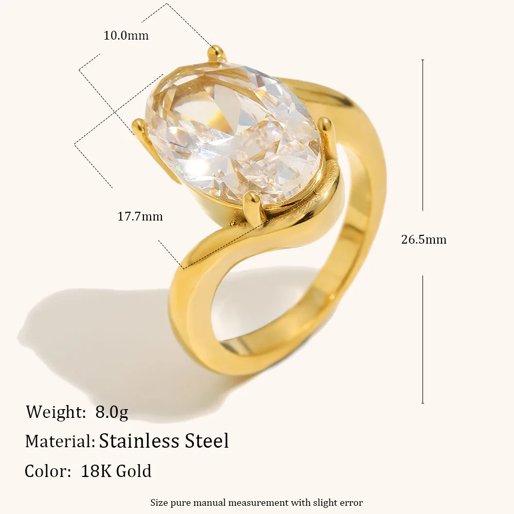 Elliptical Zircon Asymmetric Stainless Steel Women’s Ring – Gold Plated Fashion Jewelry