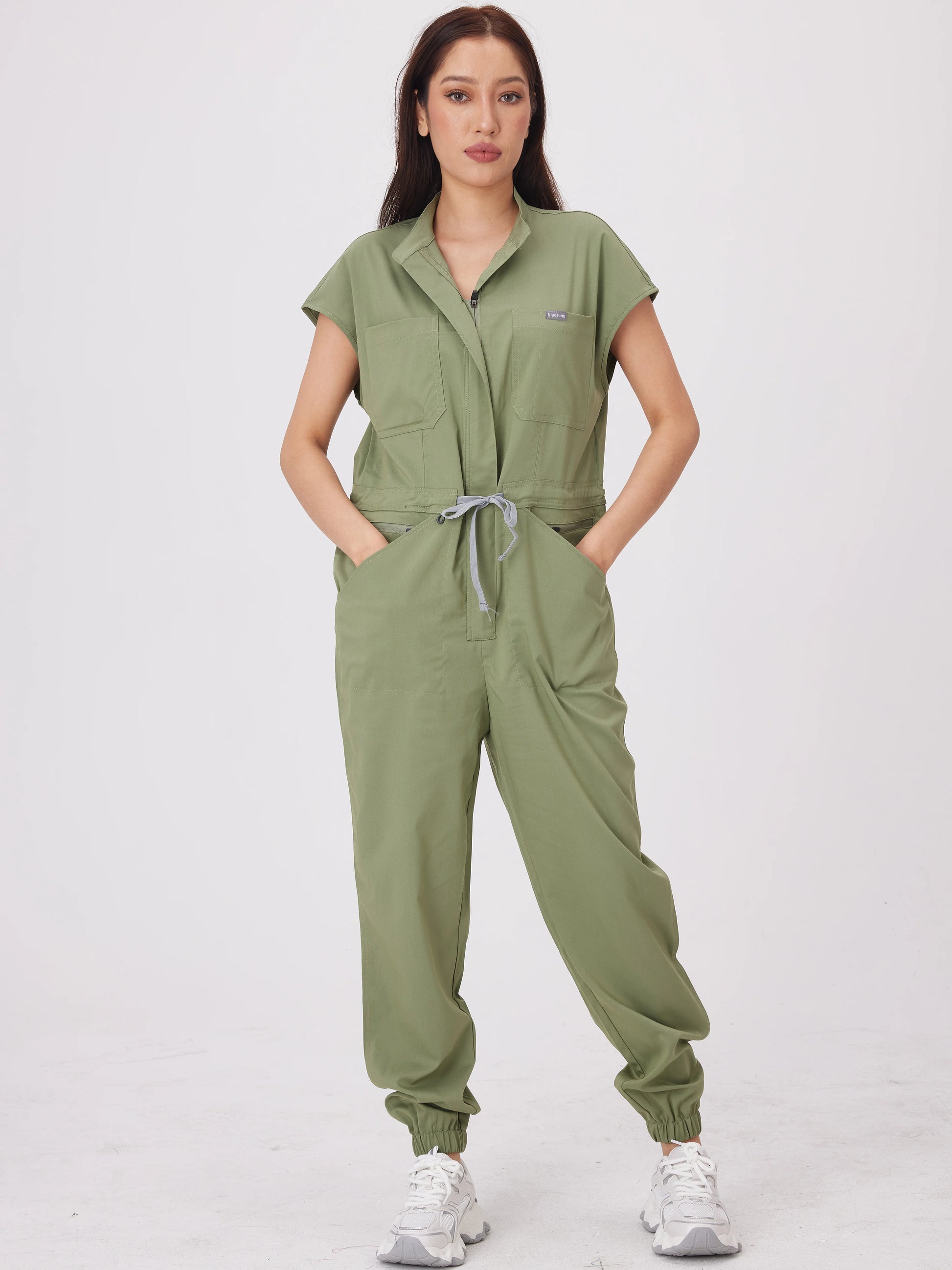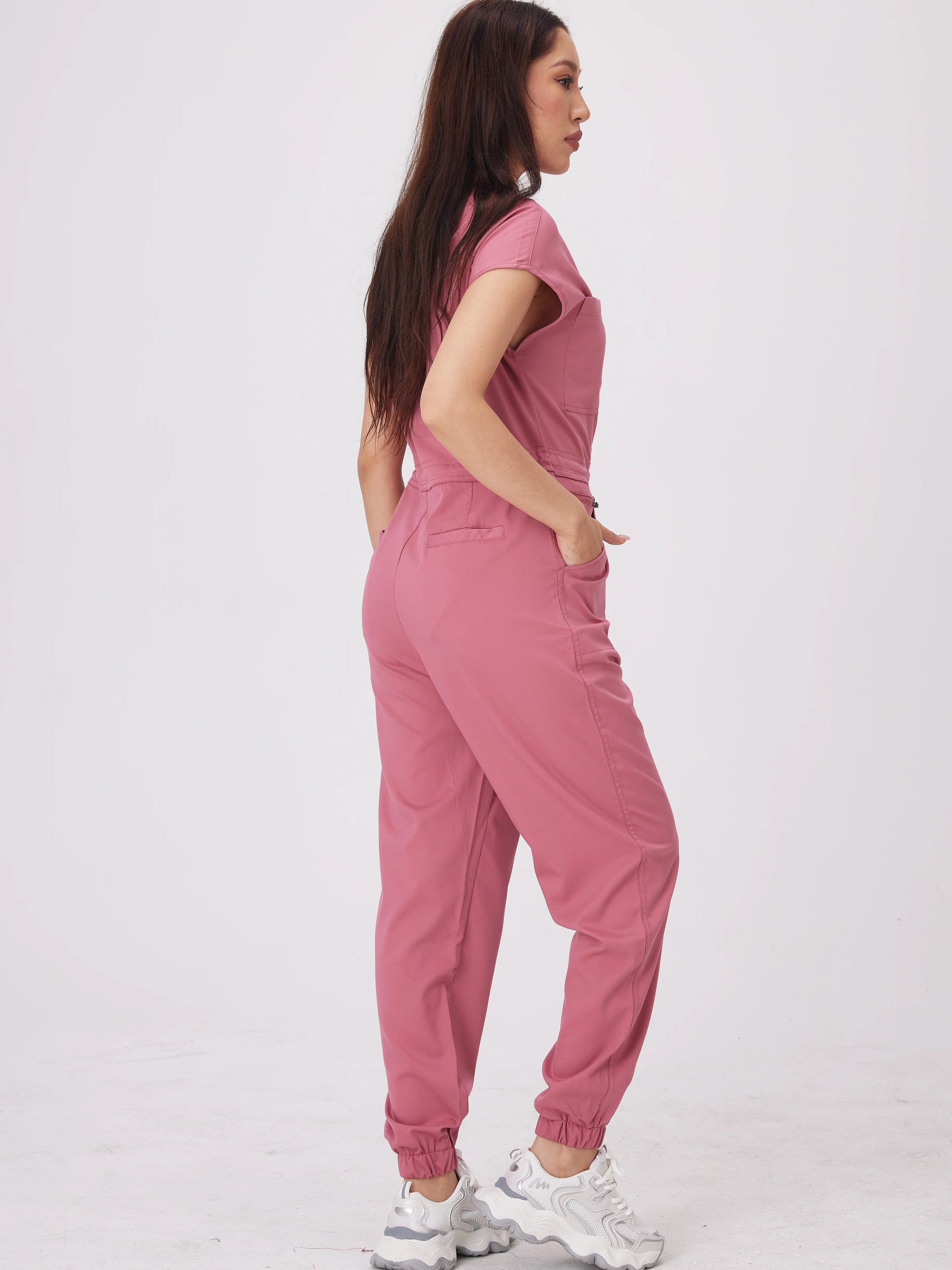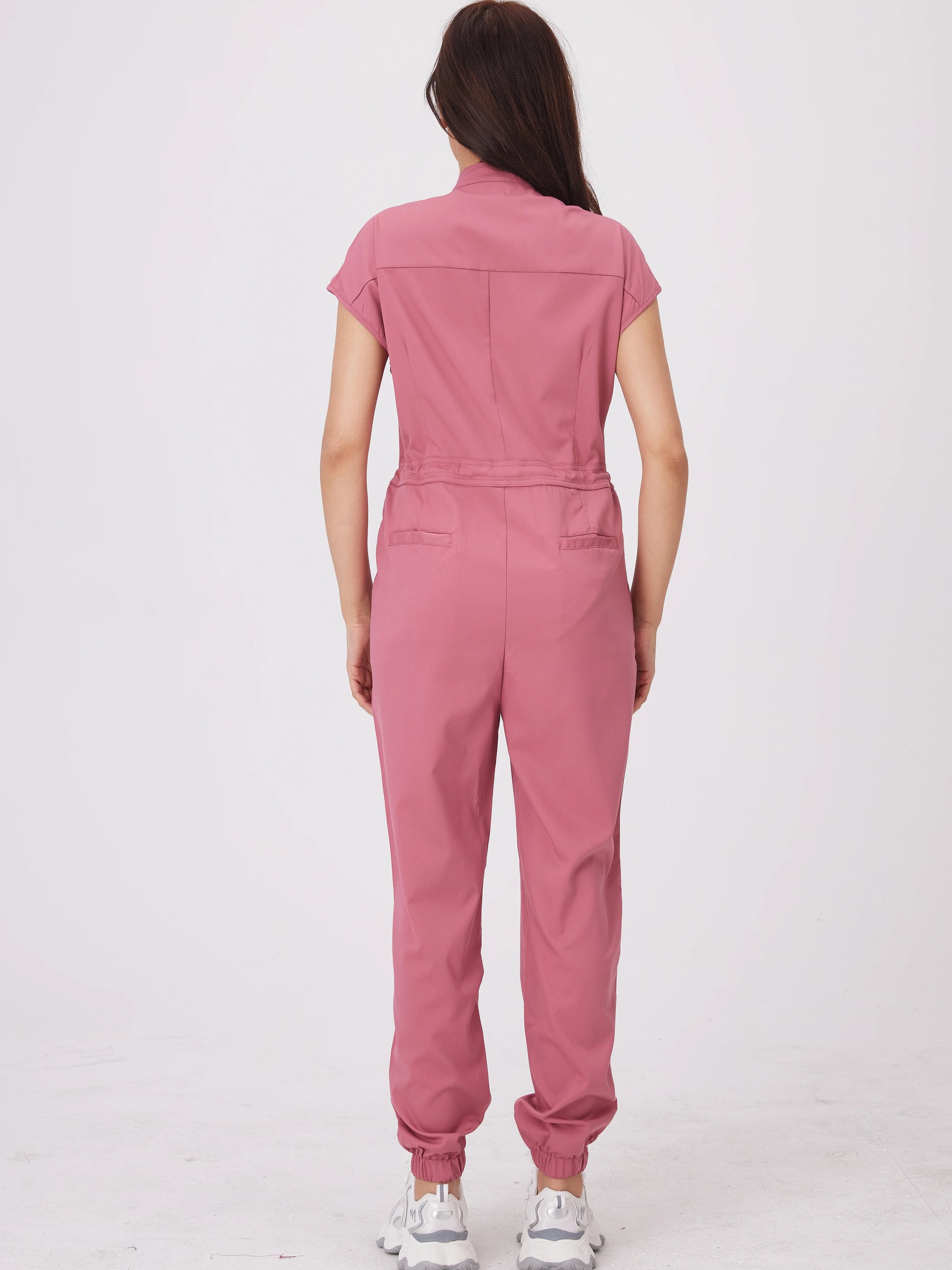 Women's Short-Sleeve Medical Scrub Jumpsuit – Hospital Uniform with Pockets