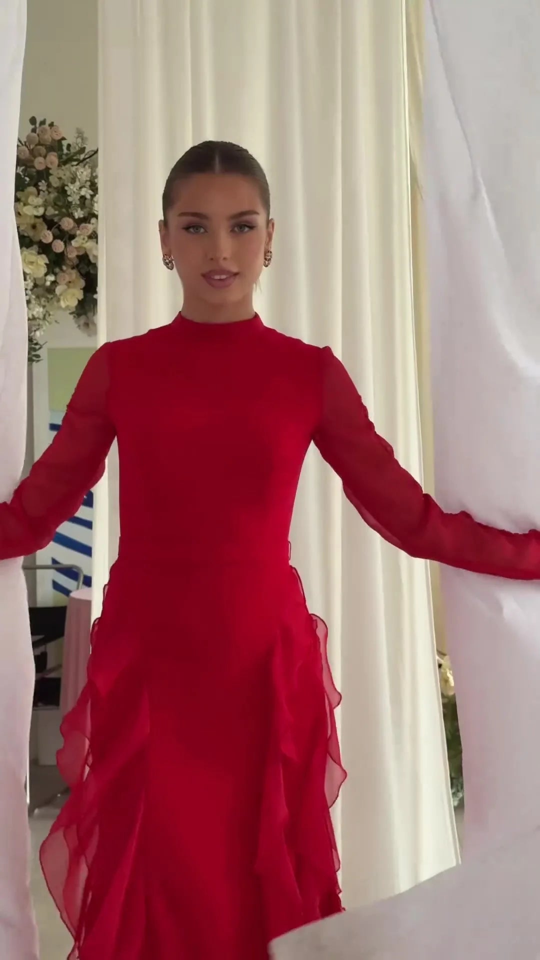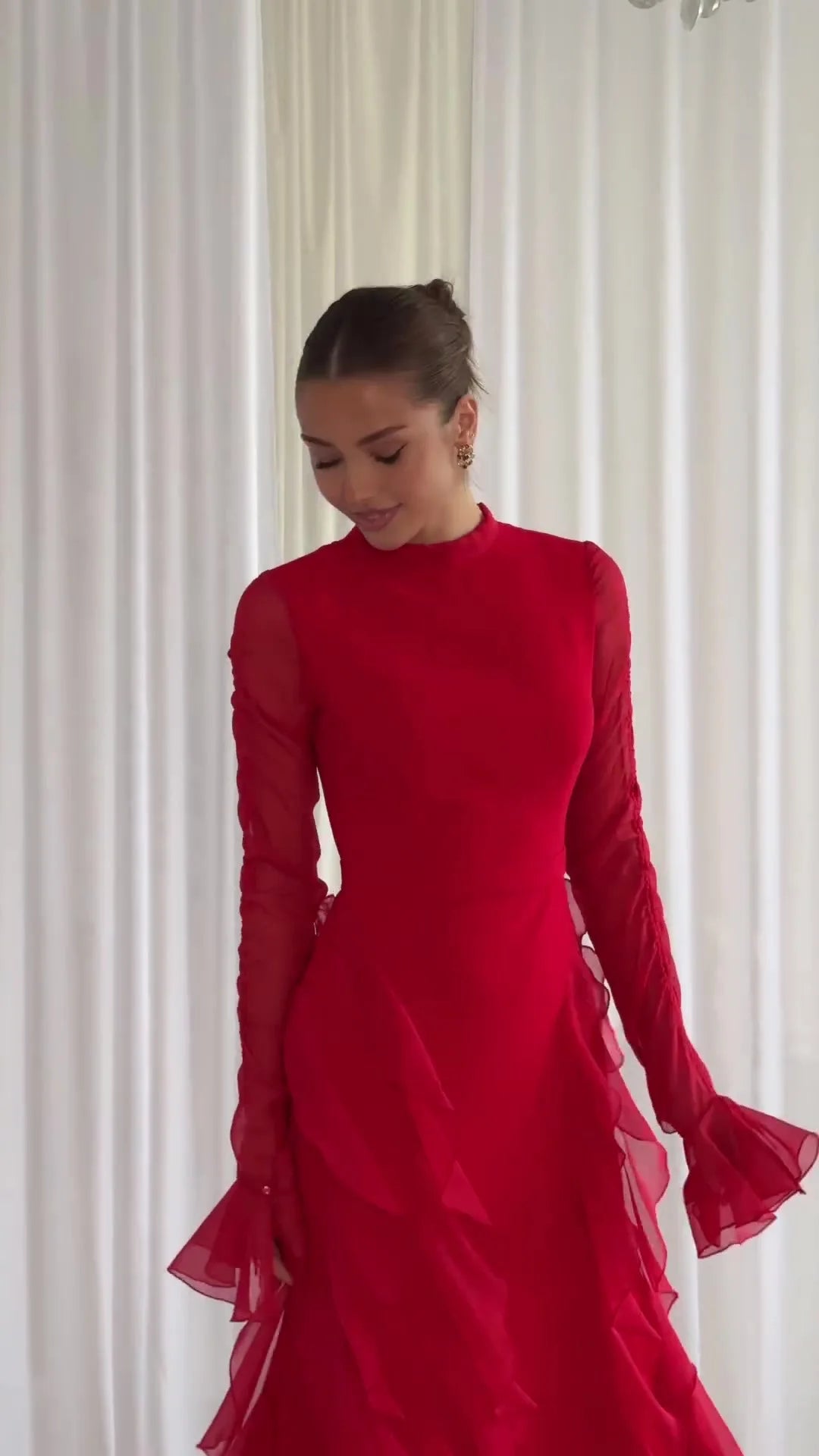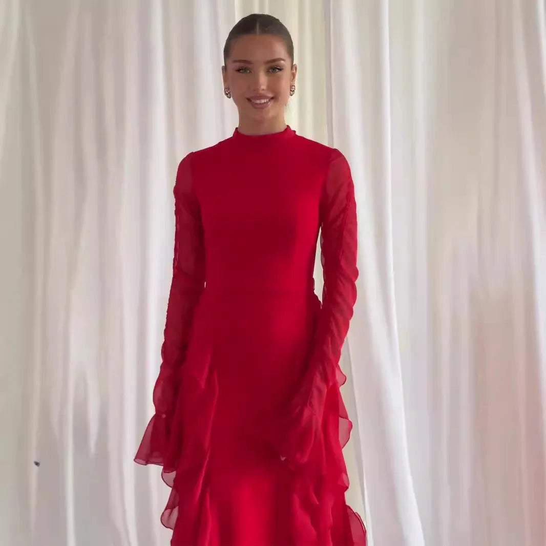 Eid Luxe Flow Gown – Elegant Modestwear Kaftan Inspired by Moroccan Jalabiya, Ruffle Trim Dubai Style Robe Dress for Women"