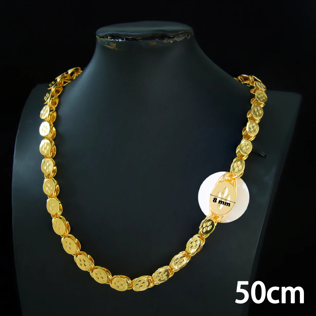 Luxury Arabic Wedding Long Necklace – 50/100cm, 24K Gold-Plated, Islamic Dubai Turkish Women's Bridal Engagement Party Chic Jewelry