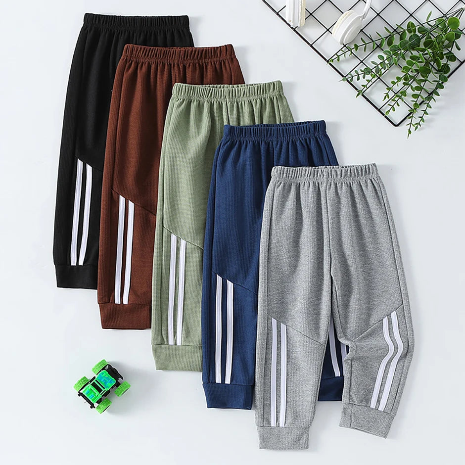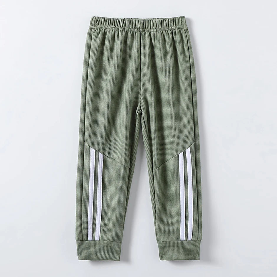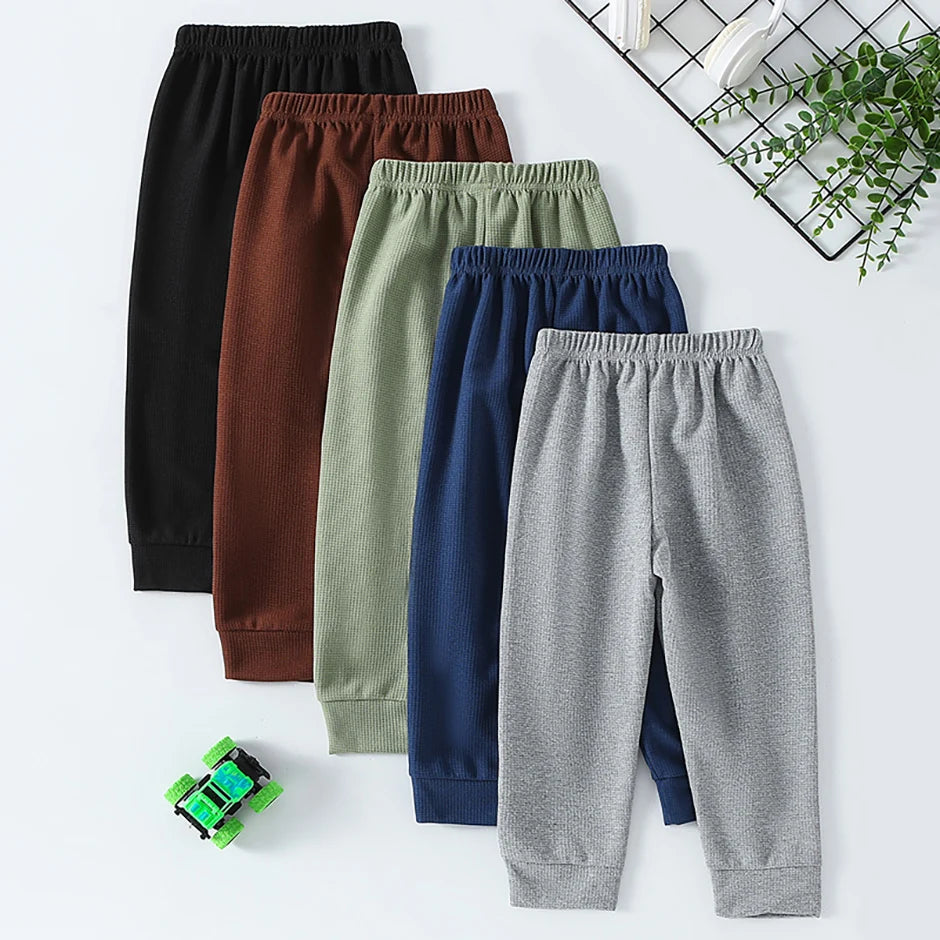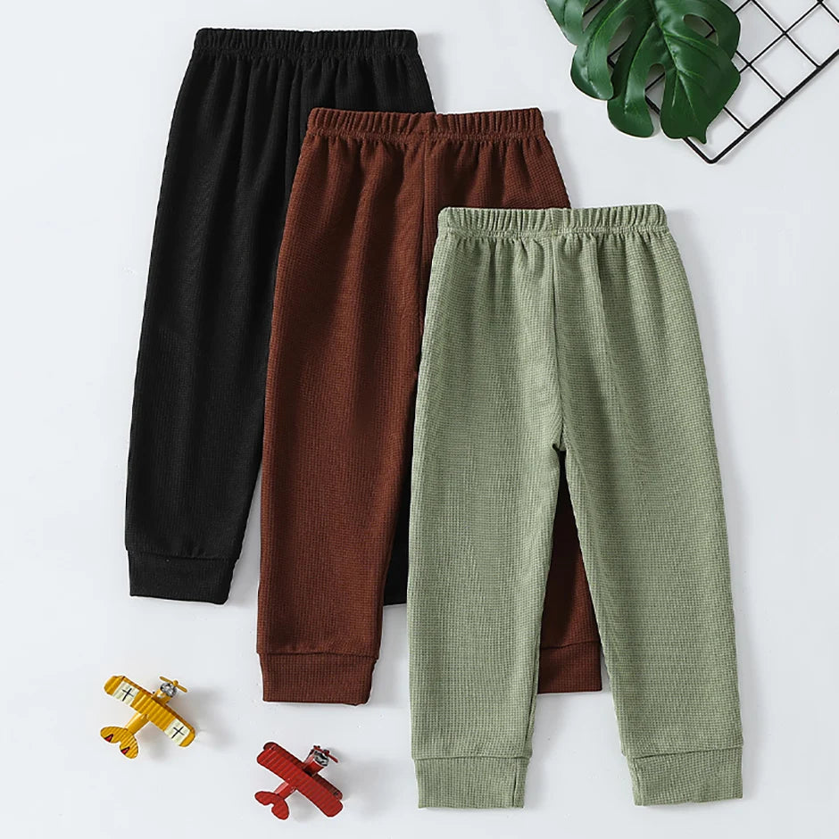 1/3-Piece Autumn & Winter Waffle Knit Sweatpants for Boys & Girls – Solid Color, Casual & Sporty