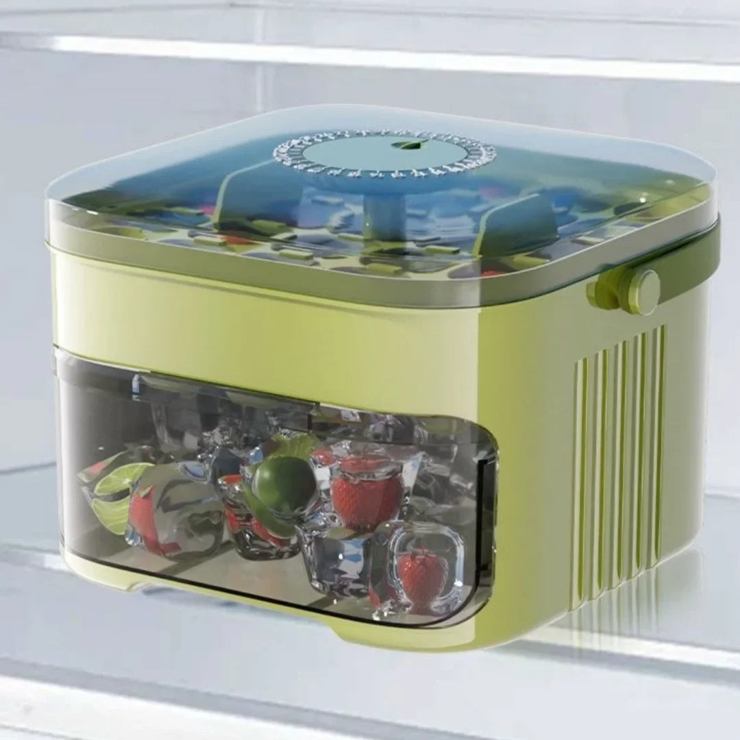 Premium Compact Double-Layer Ice Cube Tray with Lid & Storage Bin – Pull-Out Ice Drawer with Carry Handle | Space-Saving Kitchen Essential