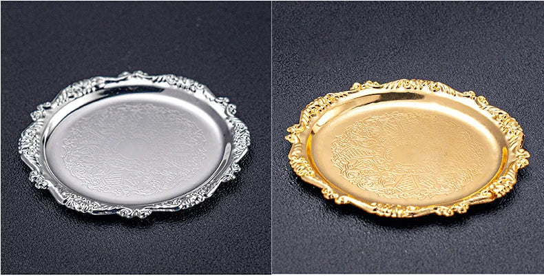 Vintage Golden Cocktail Coaster Metal Exquisite Cake Tray Set Silver Plated Mat Placemat Snack Dishes Rack Set