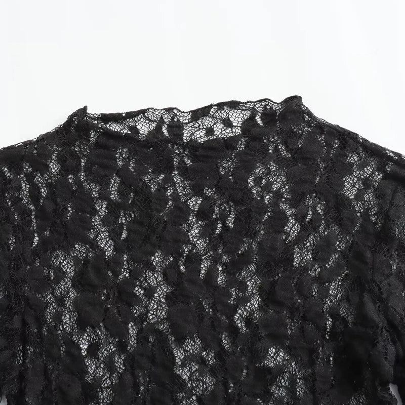 Women's Lace Bodysuit – Black Cutwork One-Piece, Long Sleeves, O-Neck, High-Stretch Fabric – Elegant Autumn Wear